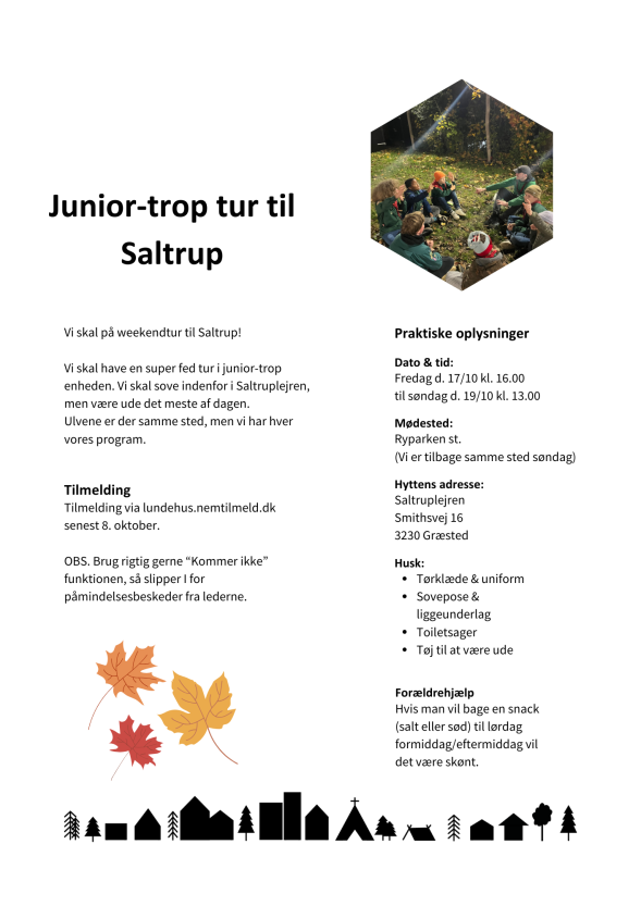 Vi skal på junior-trop-weekendtur til Saltrup!